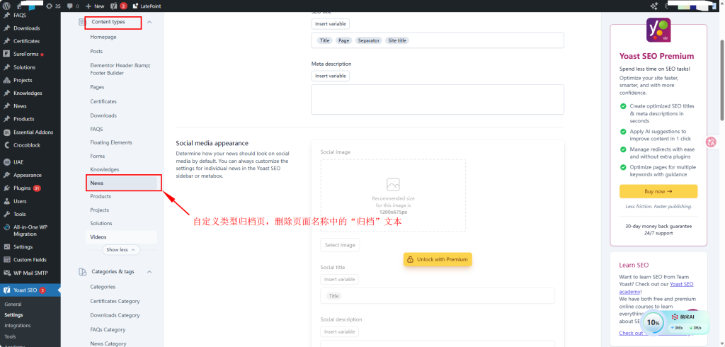 1.确定页面类型(Post Type Archive),方便在Yoast SEO插件中定位在哪里进行修改
